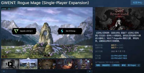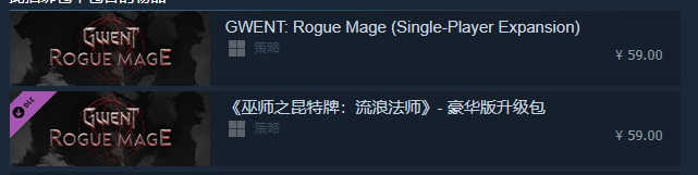 玩家打开steam平台,在商店搜索栏中输入GWENT: Rogue Mage (Single-Player Expansion)即可找到该款游戏。